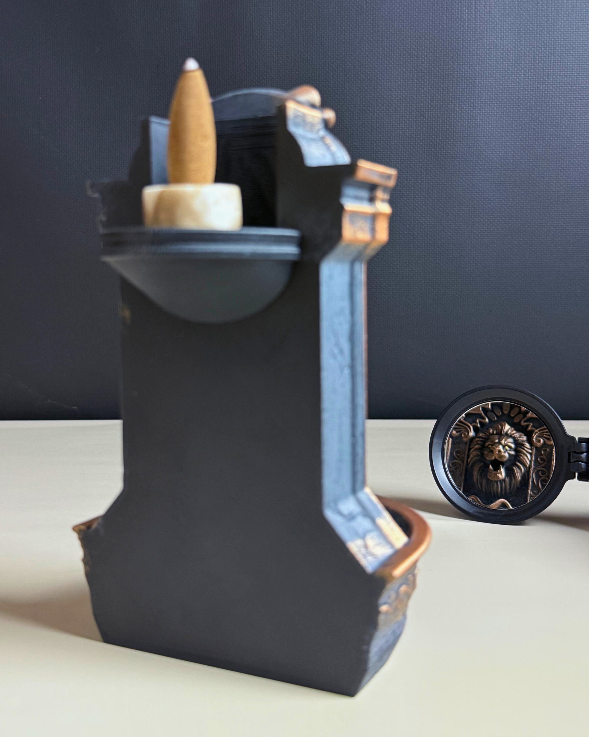 Aslan figürünün görkemiyle birleşen bu özel tasarım, mekânınıza hem estetik hem de güçlü bir enerji katar. Meditasyon, sohbet ya da günlük yaşam ritüellerinizde sakinleştirici bir atmosfer yaratır. El işçiliğiyle boyanmış detaylı tasarımı sayesinde yalnızca bir tütsülük değil, aynı zamanda koleksiyonluk bir dekoratif obje olarak öne çıkar.