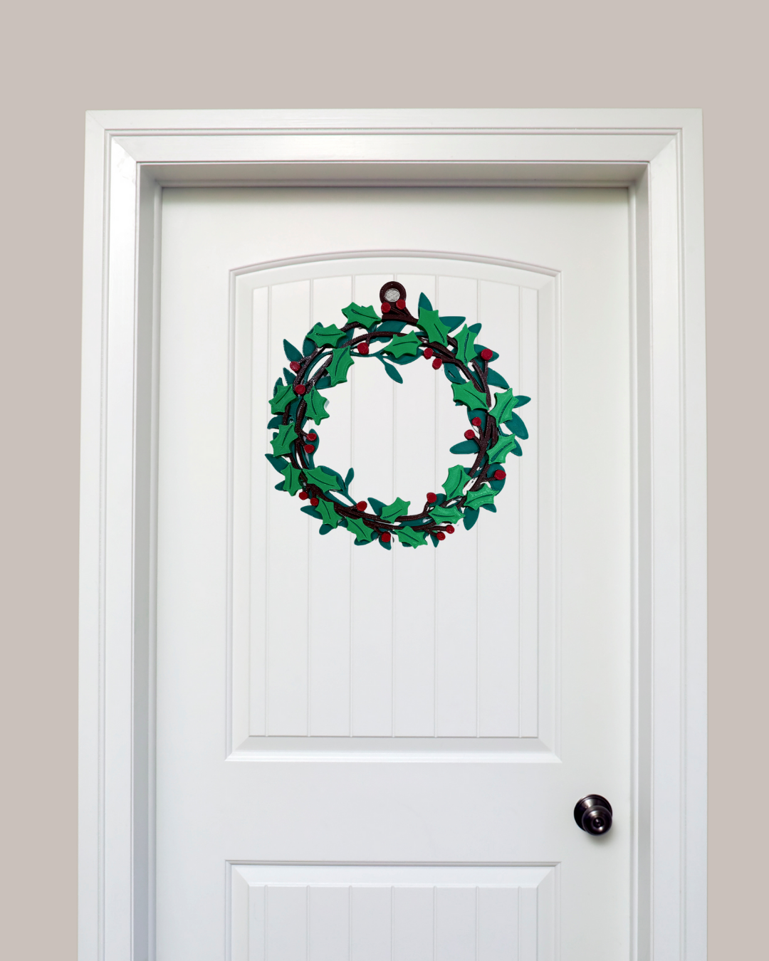 Klasik yılbaşı çelengi görünümüne modern bir dokunuş katan bu dekoratif kapı süsü, evinizin girişine anında yeni yıl atmosferi taşır. Canlı yeşil yaprakları ve kırmızı detaylarıyla yeni yıl kutlamaları, misafir karşılama anları ve kış dekorasyonları için zarif ve zamansız bir tamamlayıcıdır.