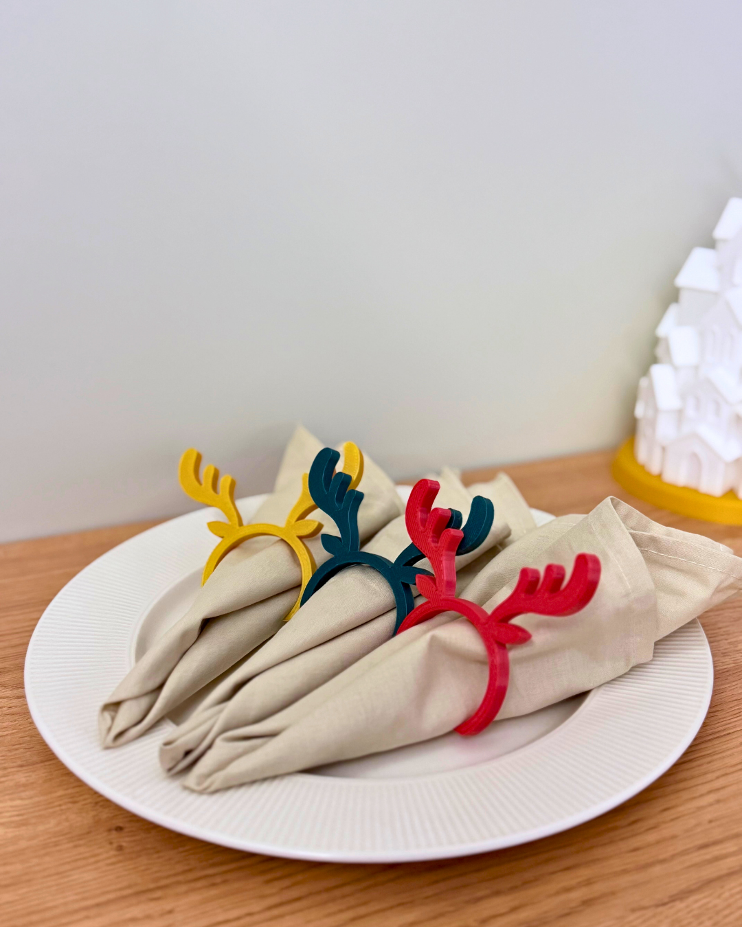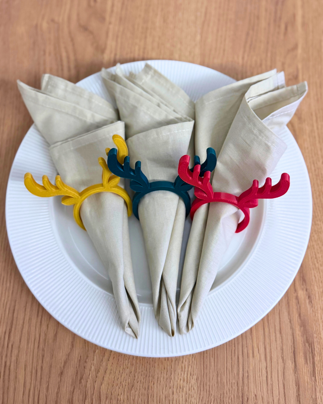 Yeni yıl sofralarına zarif bir dokunuş eklemek isteyenler için geyik figürlü peçete süsleri, masanıza hem sıcak hem de şık bir yılbaşı atmosferi getirir. Minimal çizgileri ve modern formuyla peçeteleri düzenli şekilde tutarken dekorasyonun en tatlı detaylarından biri hâline gelir. Yılbaşı akşamı, davet sofraları ve özel buluşmalarda masayı bütüncül bir tema ile tamamlar. Her biri kolayca peçeteye geçirilir ve sofranın genel görünümünü anında yükseltir. Setin içerisinde her renkten 2şer tane olmak üzere 6 adet peçete süsü vardır.