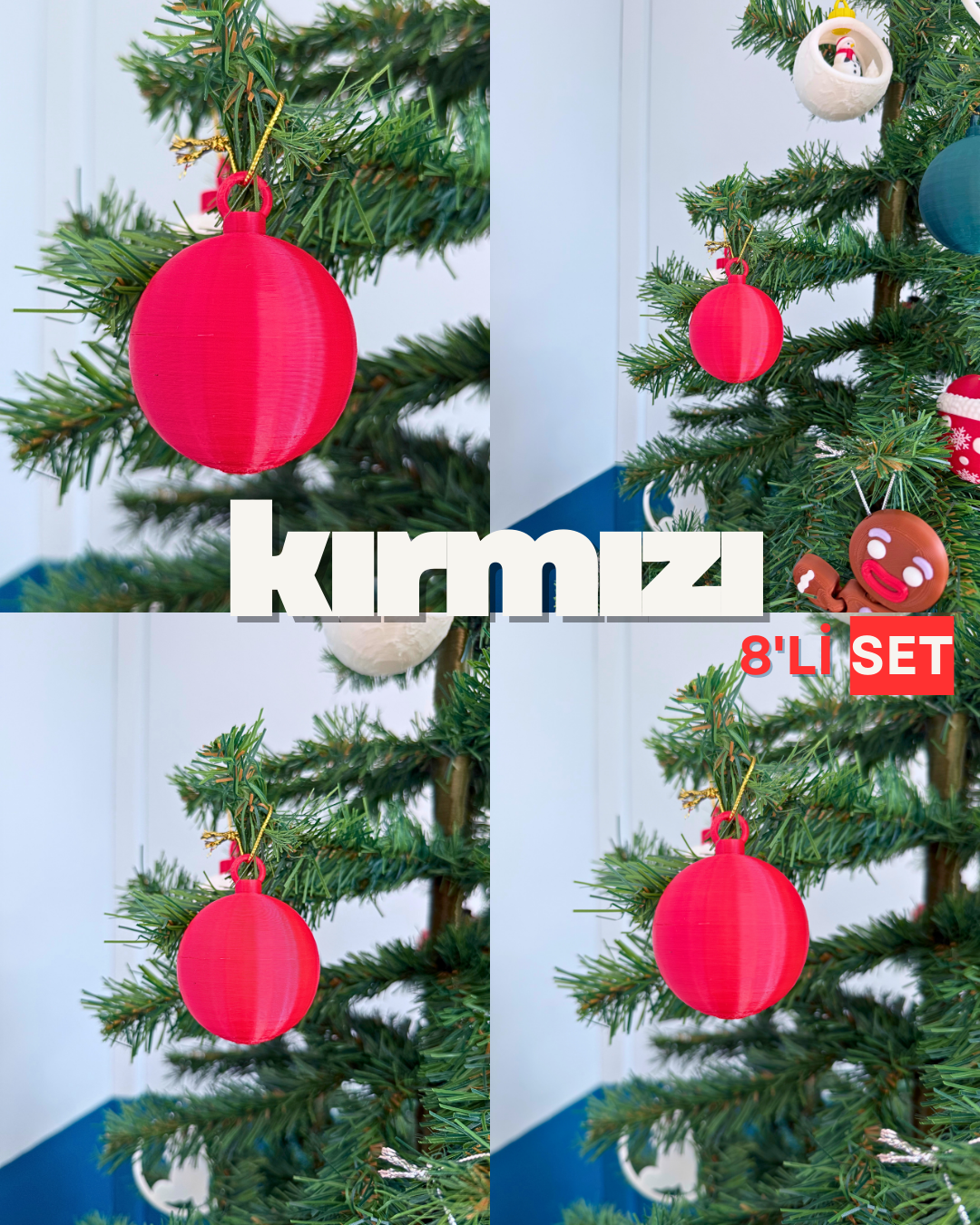 Klasik Yılbaşı Ağaç Süsleri Kırmızı 8'li Set
