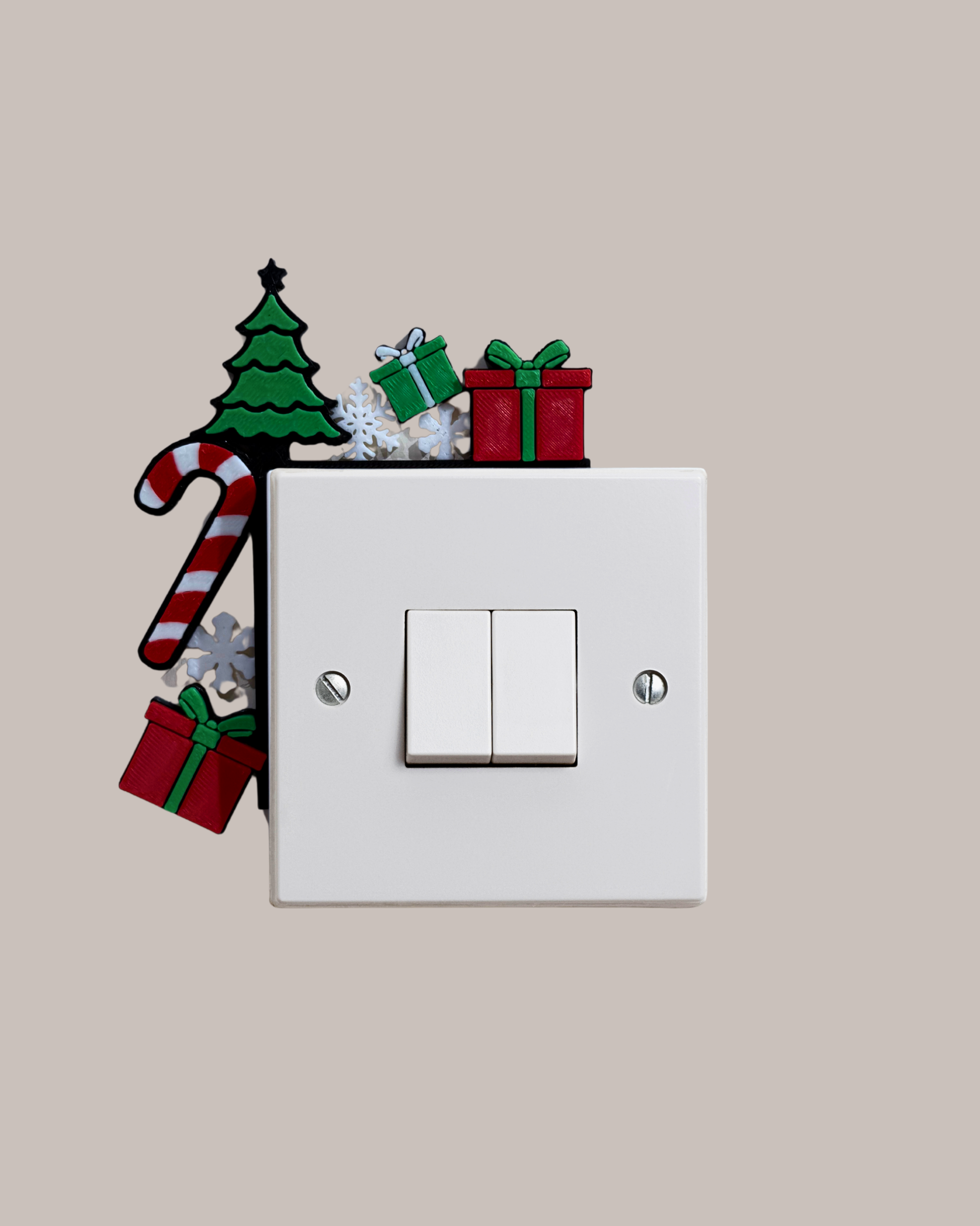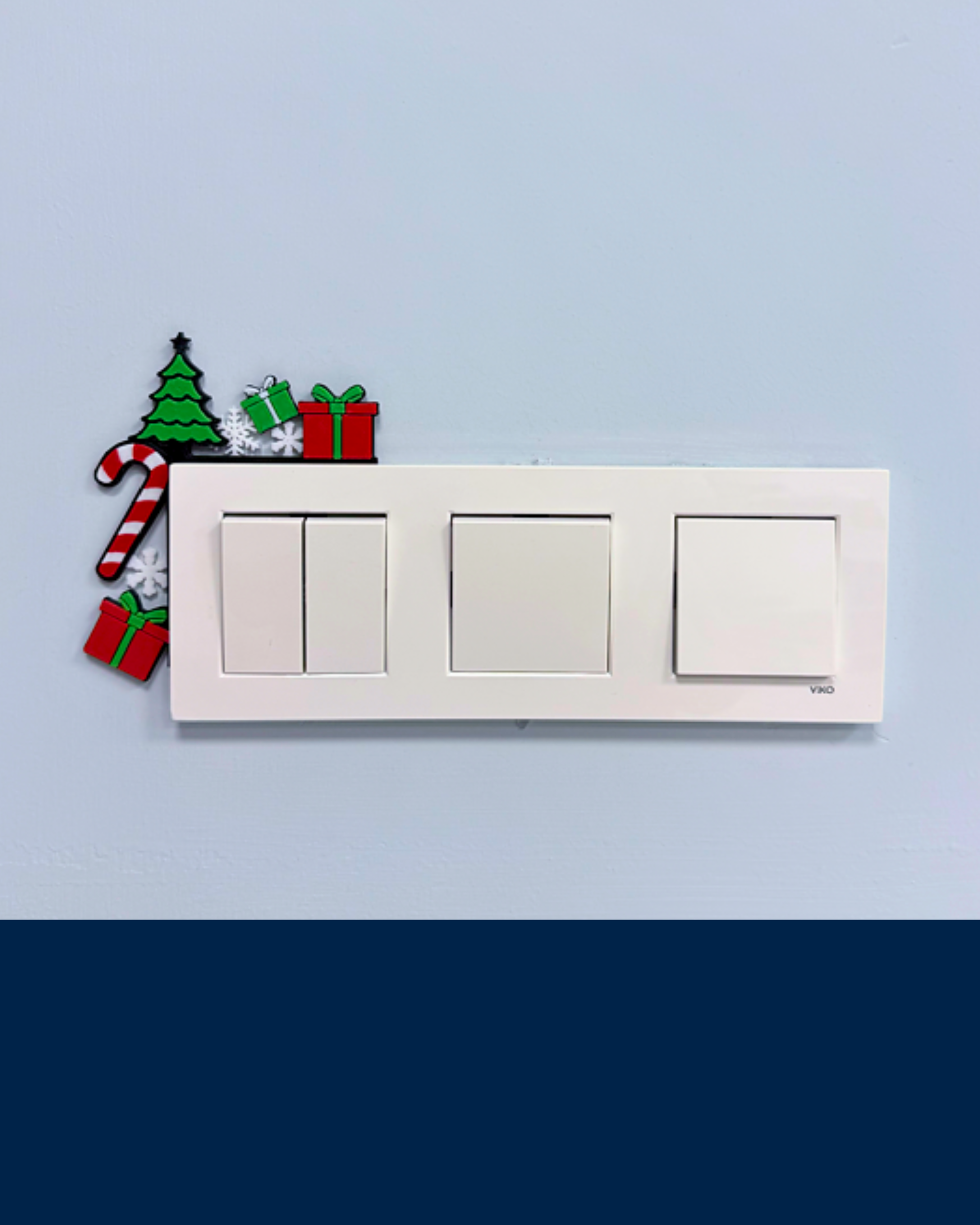 Yılbaşı ağacı, hediye paketleri, kar taneleri ve şeker çubuğu detaylarıyla tasarlanan bu renkli ışık kenar süsü, yılbaşı dekorunuza keyifli ve sıcak bir dokunuş katar. Işık anahtarının çevresine kolayca yerleşen tasarımıyla bulunduğu alana anında yılbaşı havası getirir.