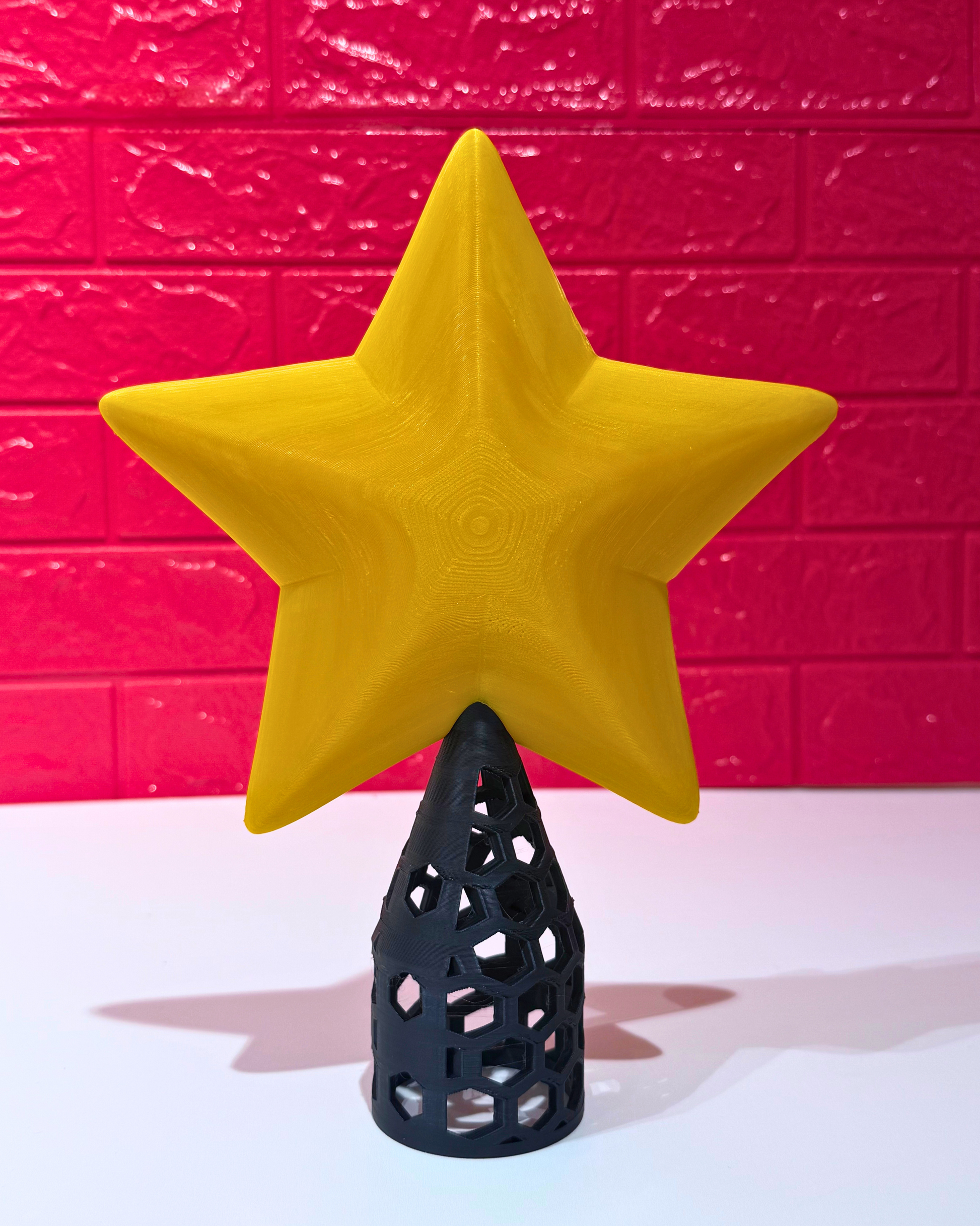Parlak sarı rengi, sevimli yüz detayları ve modern gövde tasarımıyla yılbaşı ağacınızın tepesine enerjik bir dokunuş katan dekoratif bir yıldızdır. Klasik tepe yıldızlarına alternatif arayanlar için hem eğlenceli hem de dikkat çekici bir seçimdir. Ağacın ucuna kolayca yerleşen alt kaidesi sayesinde sabit durur ve dekorasyonunuzun odak noktası olur.